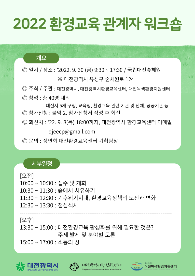2022년 대전지역 환경교육 관계자워크샵 안내