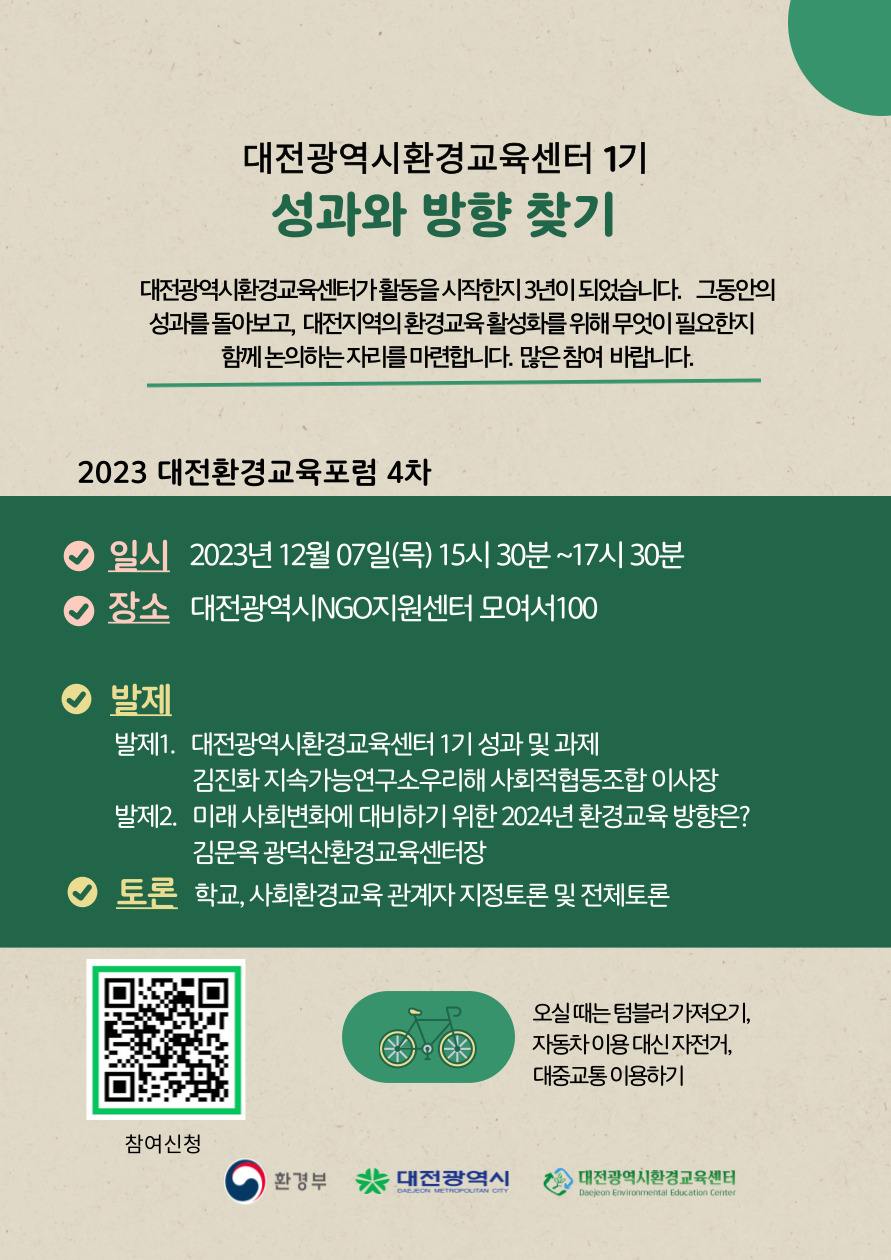 그동안의 성과를 돌아보고 대전지역의 환경교육 활성화를 위해 무엇이 필요한지 함께 논의하는 자리를 마련합니다.